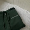 "everythingoes" inspired zipped hoodie in forest green.